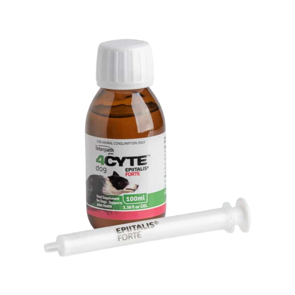 4CYTE™ EPIITALIS® Forte Gel for Dogs is a premium daily feed supplement for the treatment of acute joint disease, injury and pain. The revolutionary property of 4CYTE™ Gel is EPIITALIS®, anexclusive plant seed oil patented for its cartilage repair and pain relief properties.
