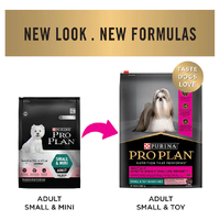 PRO PLAN Adult Sensitive Skin & Stomach Small & Toy Breed salmon & Mackerel Dry Dog Food is a scientifically developed, dual action formula to help minimise sensitivities. For dogs with wheat and meat intolerance, it is formulated without wheat, corn, soy, chicken and beef and helps reduce skin inflammation and assist in skin repair, while also maintaining skin moisture and firmness. It contains highly digestible and gentle ingredients for inflamed digestive tract. These recipes help provide targeted benefits, such as high digestibility and high nutrient absorption to support your dog's long-term health. The small, bite-sized kibble makes chewing easier for small or toy breed dogs.
