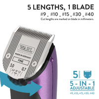 Includes: Professional Lithium Ion Cord/Cordless Clipper with LCD Battery Level Icon, 5-in-1 Fine Blade (#9, #10, #15, #30, #40), Soft Storage Case, 6 Attachment Guide Combs, Charging Stand, Cleaning Brush, and Blade Oil.