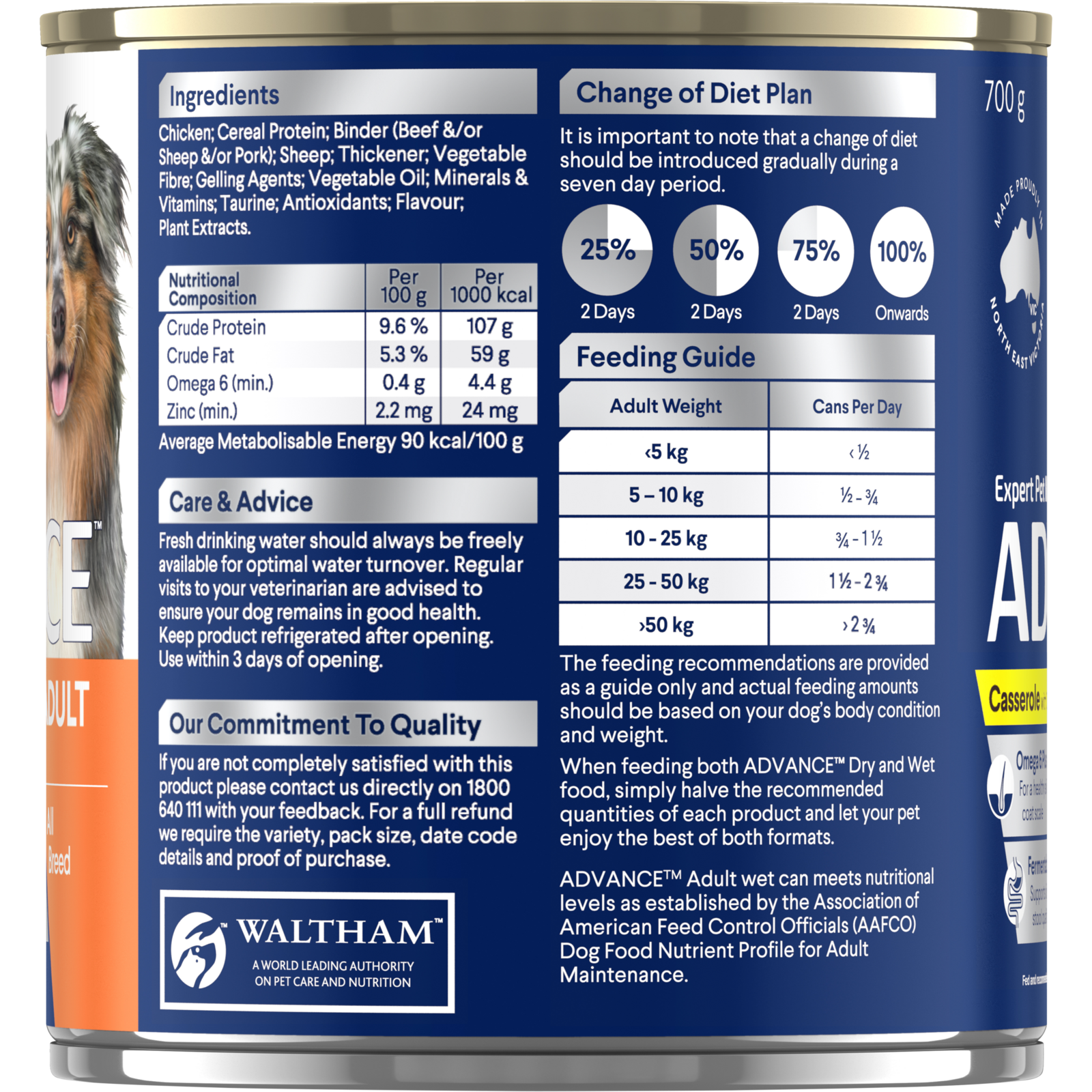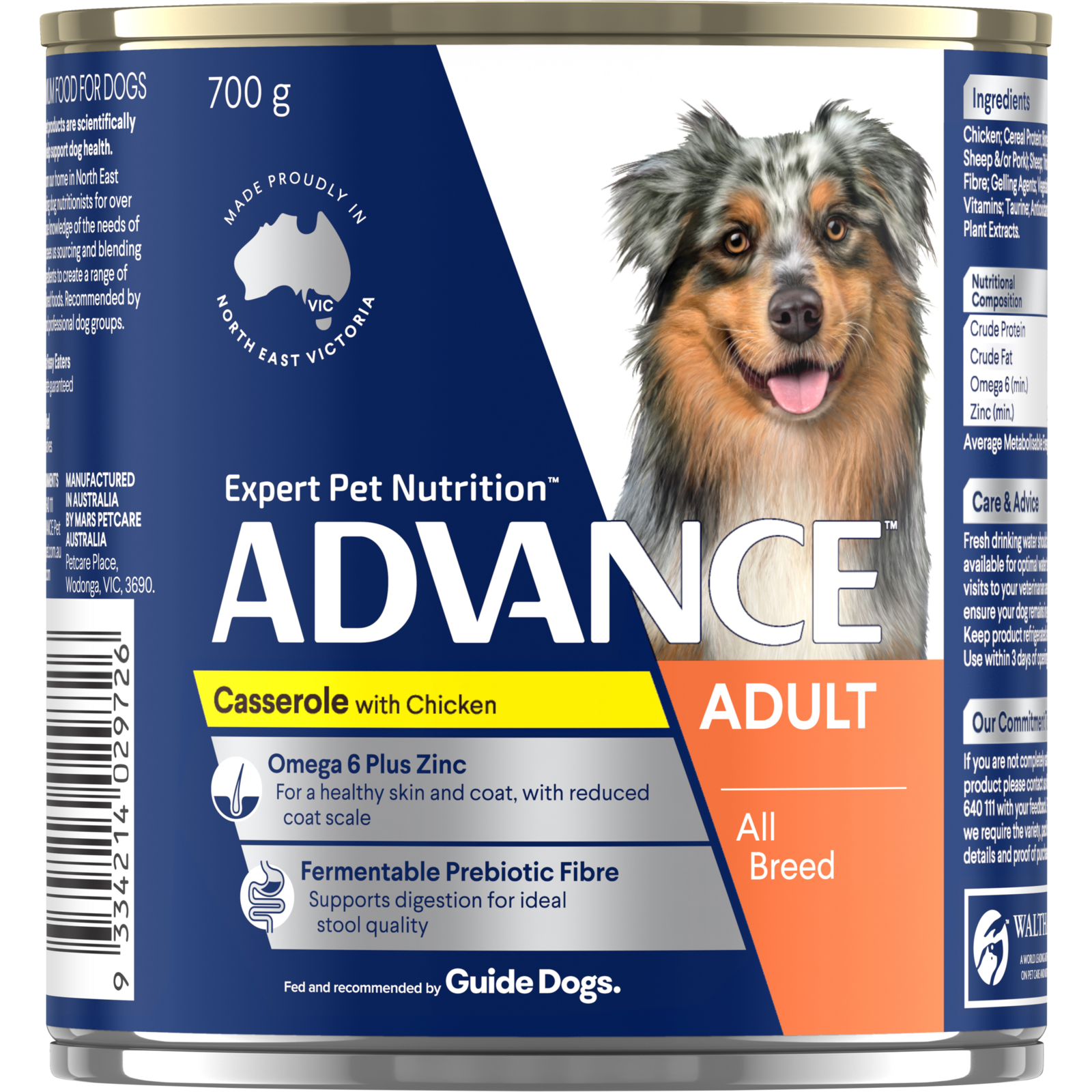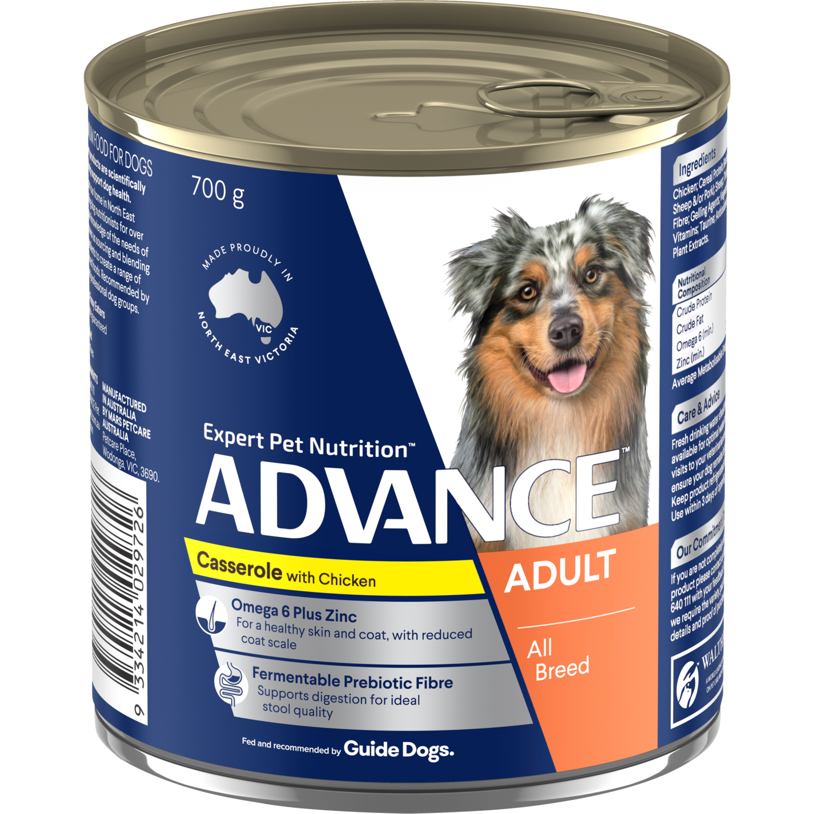 Advance is a nutritionally complete, balanced food that is designed to help your dog reach their full potential, every day. It is made in Australia from all-natural ingredients and it is completely free of added preservatives, flavours and colours.