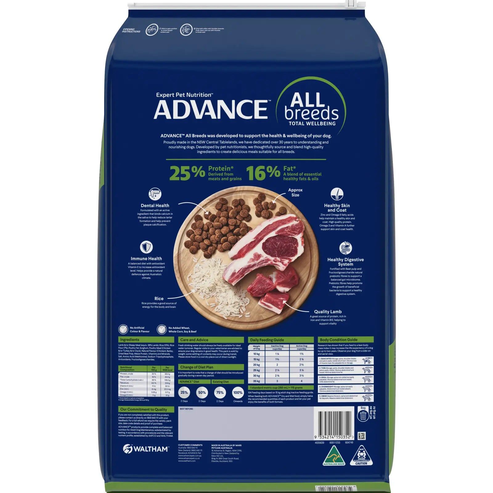 ADVANCE All Breeds Total Wellbeing for All Adult Dogs delivers optimal nutrition for Australian pets by combining global science with local expertise and select natural ingredients. ADVANCE products are uniquely formulated for Australian pets.