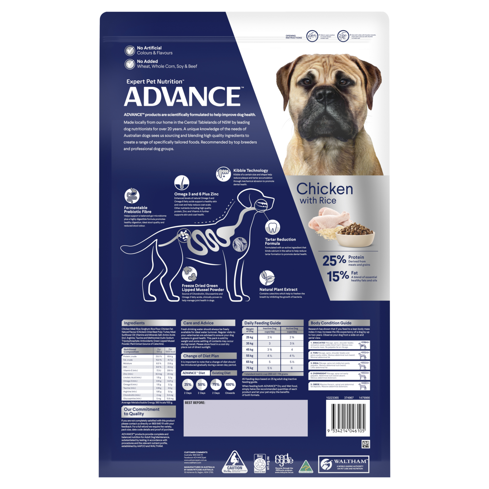 Advance™ dental Large+ Breed Dry Dog Food is a super premium food for dogs with select natural ingredients. Using Chicken as the #1 ingredient, it is Australian made and benefits your dog in more ways than just giving them a tasty feed!