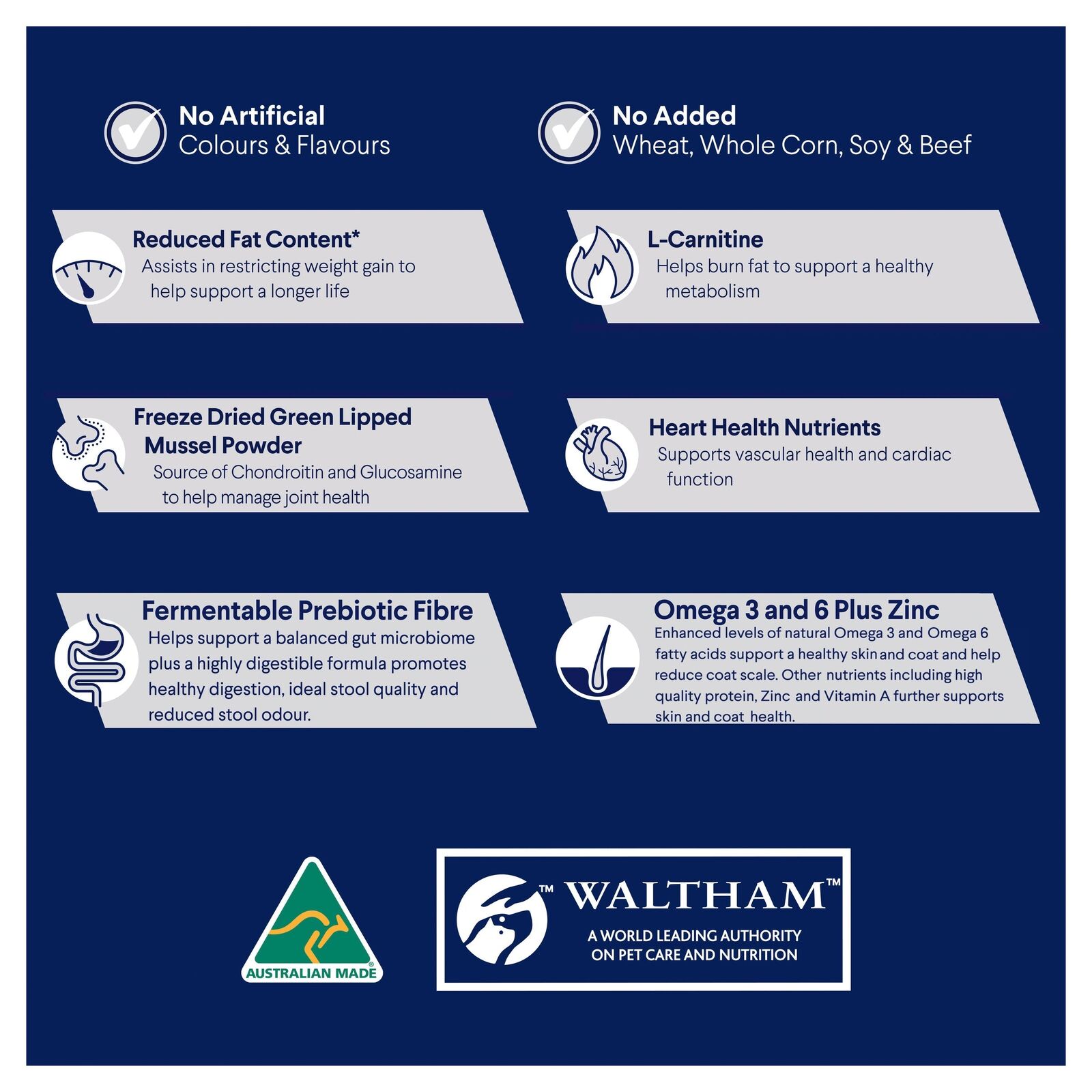 Aimed at restricting weight gain in older pets by reducing fat content and supporting their metabolism, this carefully-curated kibble is highly digestible and sure to keep your furry friends satisfied while maintaining a healthy weight.