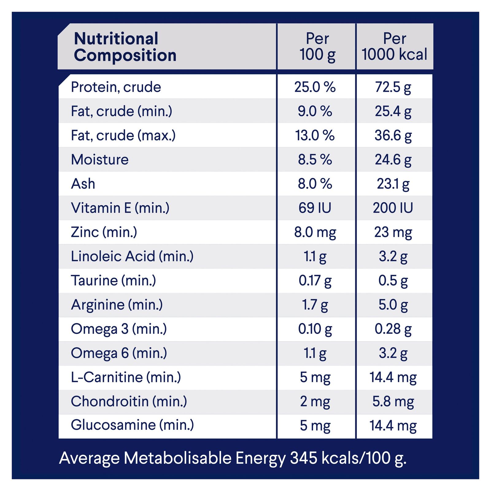 - Average Metabolisable Energy: 345 kcals/100 g.