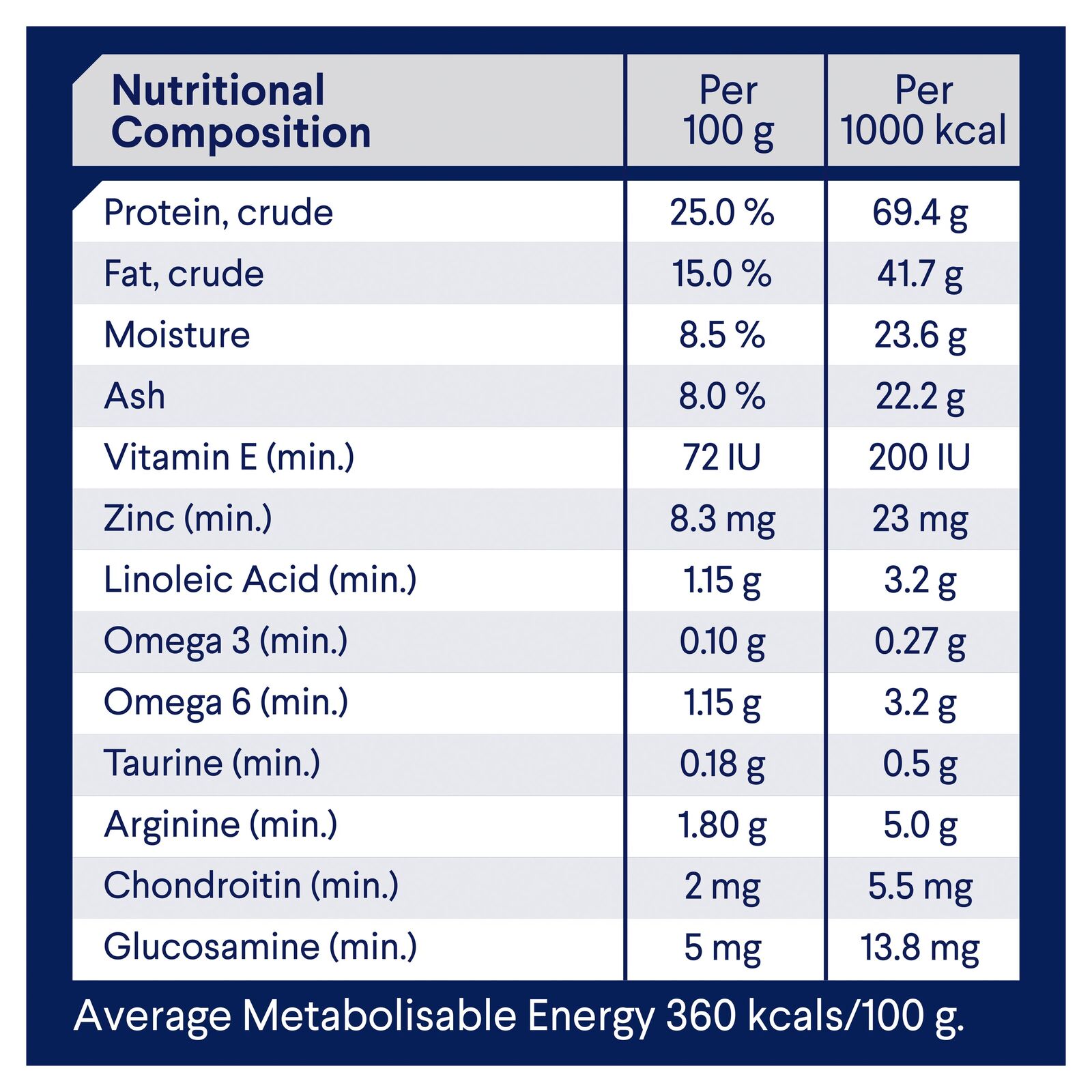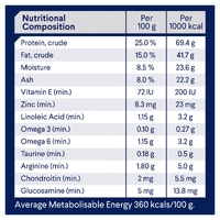- Average Metabolisable Energy: 360 kcals/100 g.