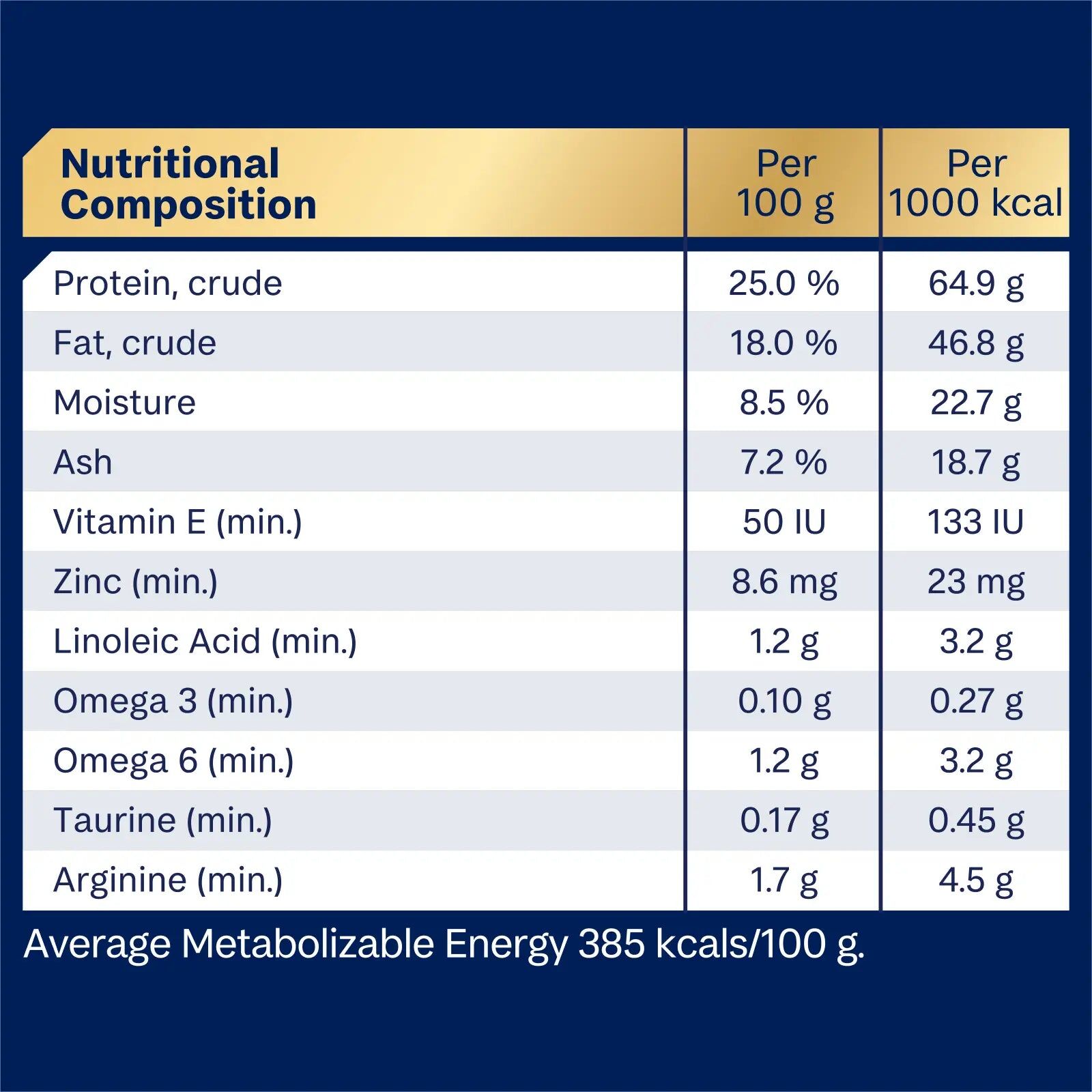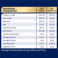 Turkey Meal; Rice; Sorghum; Rice Flour; Chicken Fat; Chicken Meal; Natural Flavour (Chicken); Dried Beet Pulp; Vitamins and Minerals; Salt; Amino Acids (incl. Arginine, Methionine and Taurine); Fish Oil; Inulin; Antioxidants; Sodium Tripolyphosphate.