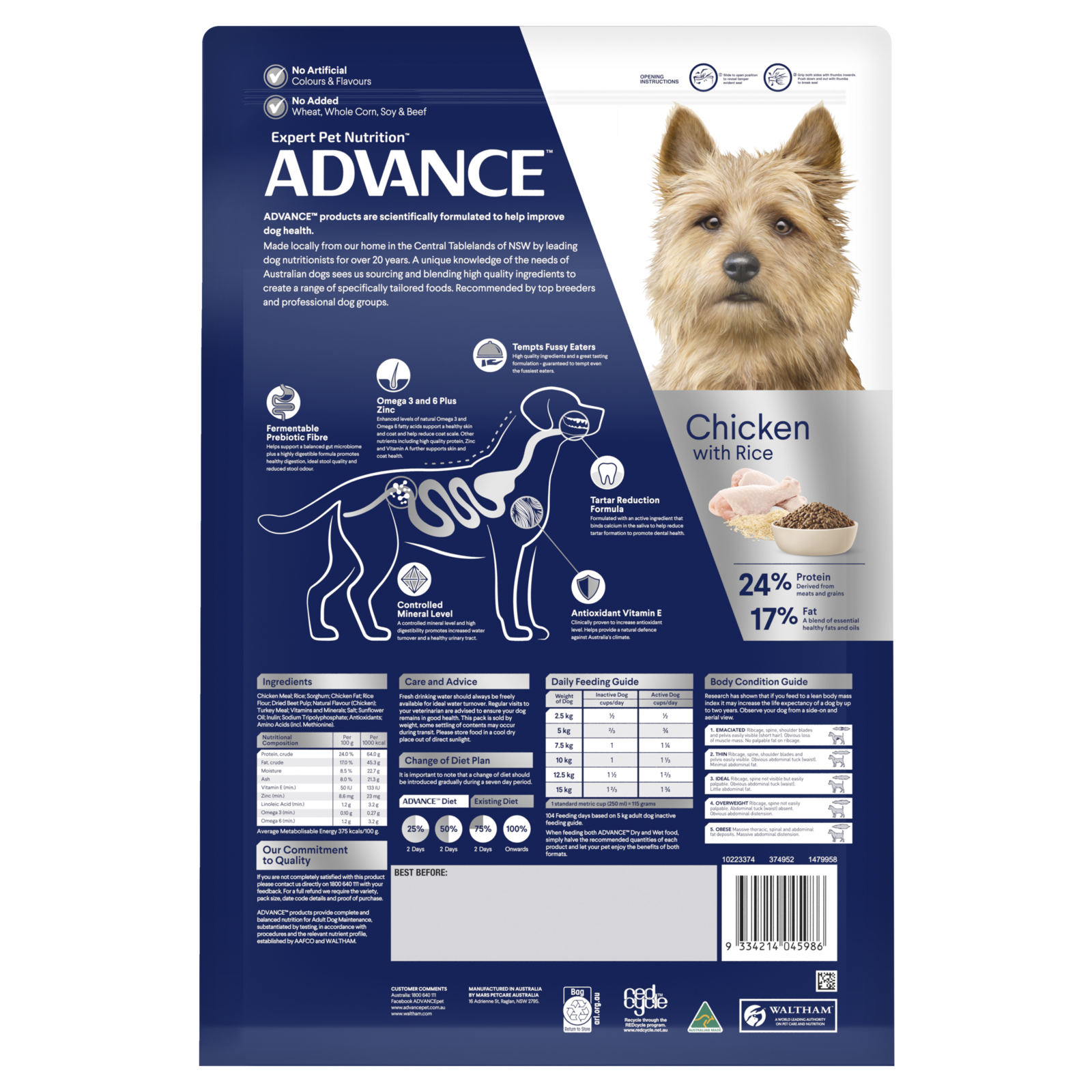 • Advance kibble has a shape and texture that gently scrapes your dog's teeth as they chew, for cleaner teeth