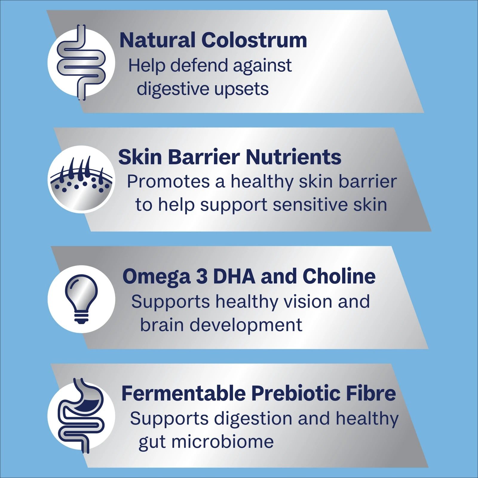 - Natural Colostrum: Colostrum is rich in growth factors, immune factors and immunoglobulins. Given in the diet, these nutrients have been demonstrated to have local effects on the gut lining, providing protection and aiding gut development. Colostrum also helps support a healthy gut microbiome.
