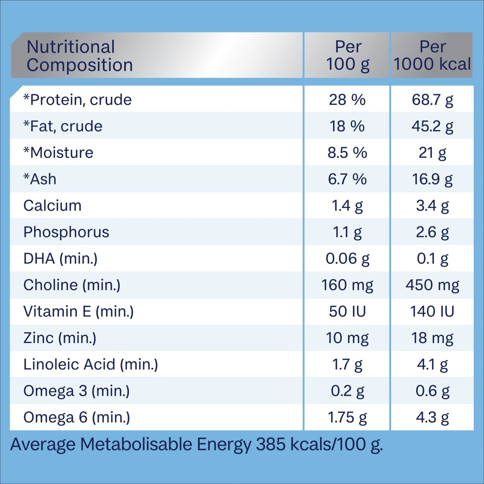 - Choline (min.): 160 mg