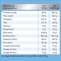- Omega 3 DHA: DHA is one of the primary fats found in the brain, eyes and nerves, required for normal brain and nervous system development. It also helps support skin and coat condition as well as joint health.