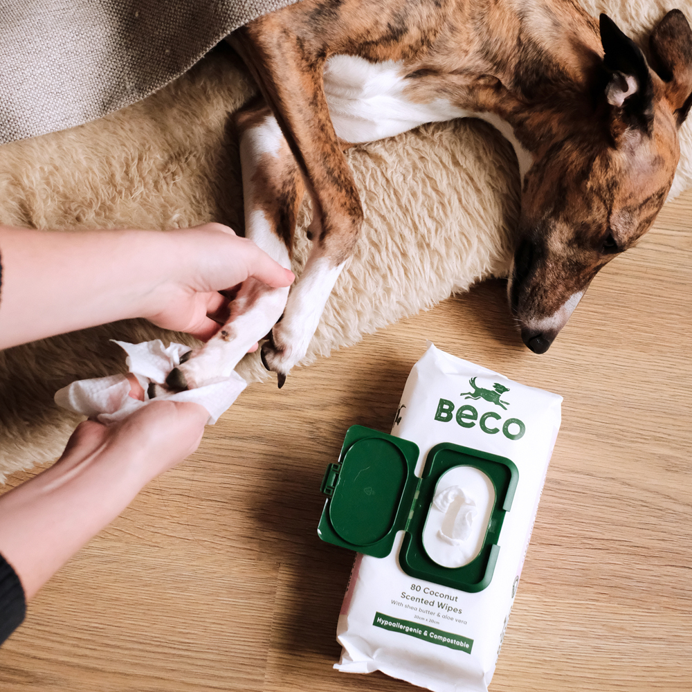 Gentle wipes infused with shea butter and aloe vera, to clean up the muckiest of pups while keeping coats shiny and soft. Hooray for no more baths! Bamboo is a species of grass that grows in abundance 30x faster than trees. The plant fibres are extra soft for paws, bums and tums, and anything in between.