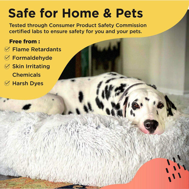 - PET-SAFE MATERIALS: Our dog bed is made with durable vegan polyester and filled with AirLoft fibers. The fibers consist of premium white poly filling that keeps its loft for up to 3Xs longer than most standard fluffy pet beds.