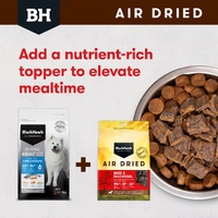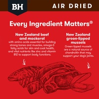 Made with 94% New Zealand beef, including liver and kidney, as well as mackerel, Black Hawk Air Dried Beef & Mackerel is a highly nutritious, complete and balanced diet for adult dogs. Gently air dried at low temperatures, it naturally preserves essential nutrients while enhancing the flavour and taste of the ingredients.