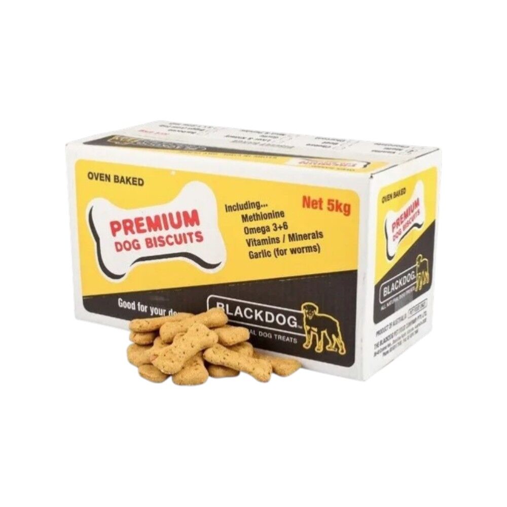Blackdog biscuits are oven baked and contain real cheese and bacon bits. They are specially formulated with added vitamins and minerals, omega-3, methionine, and antioxidants to ensure that your dog is getting the healthiest biscuits available. Not only beneficial to health, but also a tasty treat full of the good stuff.