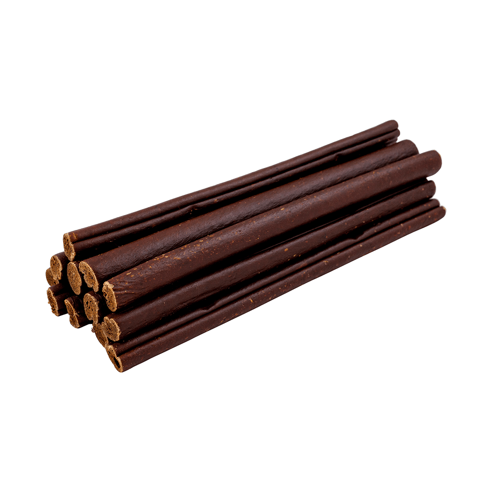 Individually packed lengths of kangaroo meat, mixed with a few other select ingredients. These sticks are manufactured to stay soft & juicy, so they are easily breakable into the desired healthy treat amount, depending on the size of pooch.