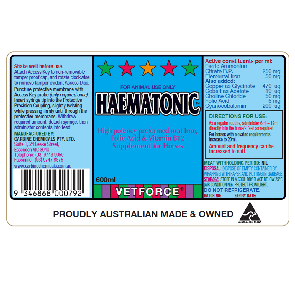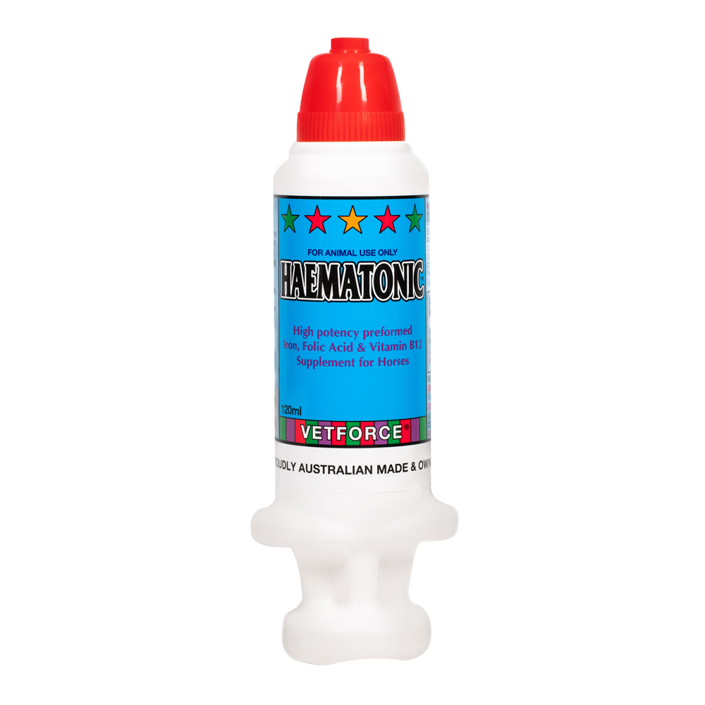 Haematonic is a high potency oral iron, folic acid, and vitamin b12 supplement for horses.