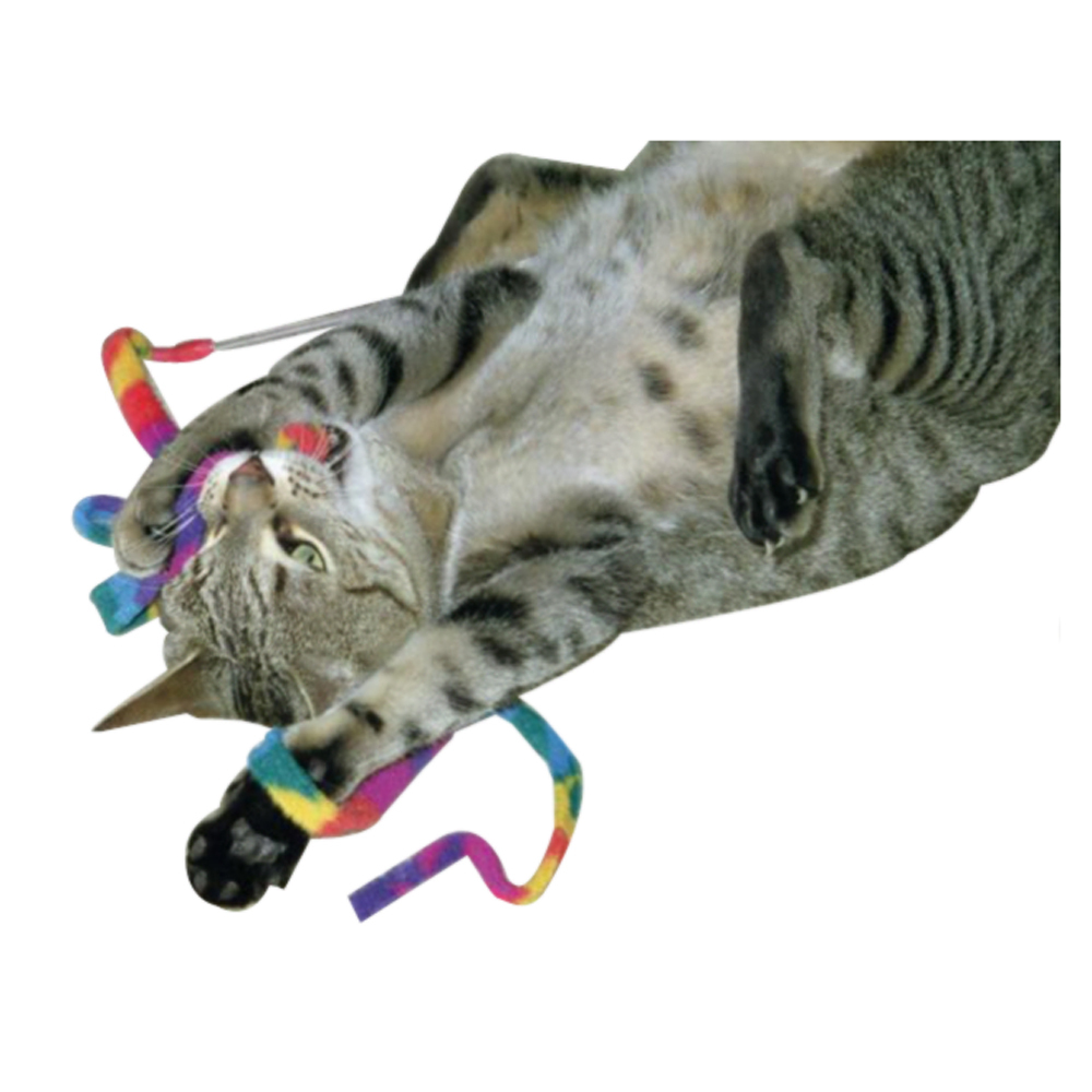 CatCharmer is an interactive cat toy designed to charm and not harm. The polycarbonate wand and very colourful fabric provides excellent aerobic exercise and is a safe interactive toy for all kittens and cats. For "catch & release" games only, not designed to withstand chewing.