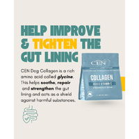 Collagen is a vital building block for Dogs’ bones, joints, cartilage, connective tissue, and blood vessels. CEN Dog Collagen Peptides may benefit joint health and mobility for dogs with joint issues or discomfort. Adding collagen to your dog’s diet may also help promote and support healthy skin, coat, and digestive system, as well as improve appetite since it increases the palatability of food.