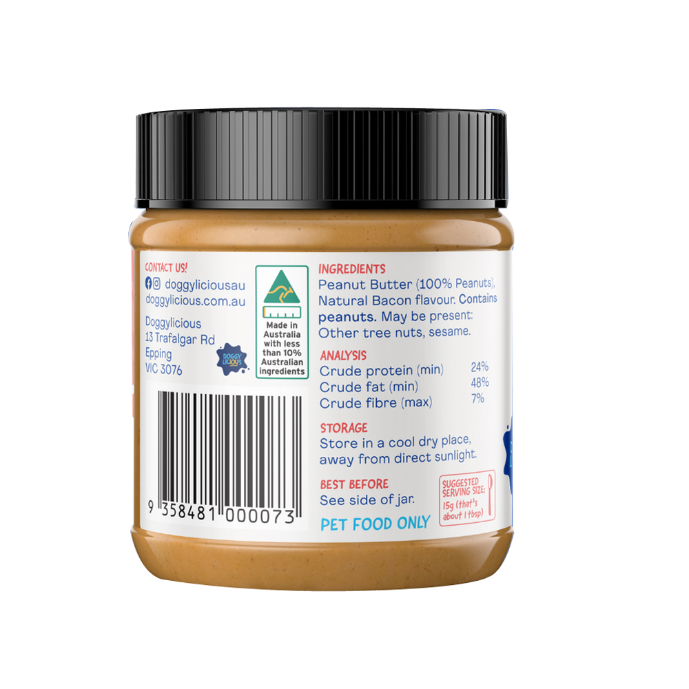 Bacon and peanut butter are a match made in heaven for dogs. This meaty spreadable treat is guaranteed to get tails wagging.
