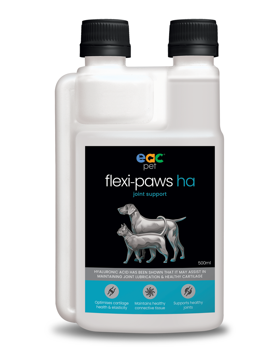 Flexi-Paws HA is a high quality liquid hyaluronic acid supplement for dogs & cats. (sodium hyaluronate).