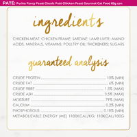 Offer your cat the mouthwatering, meaty goodness that is Purina Fancy Feast Classic Chicken Feast wet cat food. A deliciously smooth paté crafted with real, high-quality Chicken, providing 100% complete and balanced nutrition.