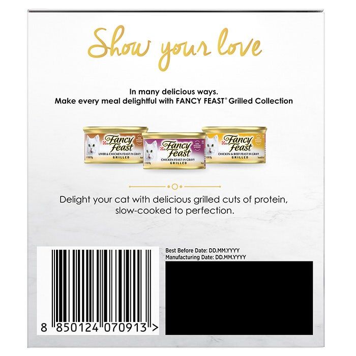 Make every meal delightful with the Fancy Feast Grilled Collection. Delight your cat with delicious grilled cuts of protein, slow-cooked to perfection. Each bite is a testament to our commitment to quality and flavor, ensuring your cat enjoys a gourmet dining experience every time.