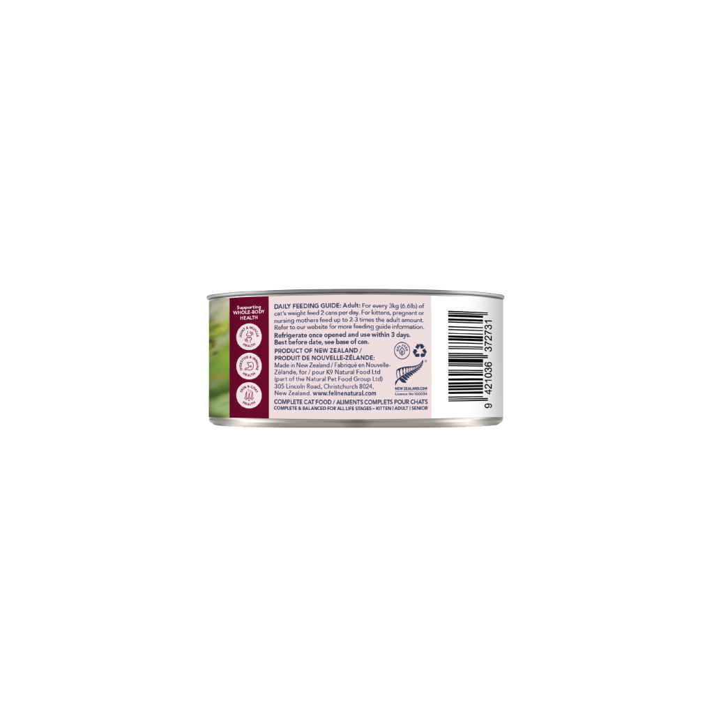 Our complete and balanced New Zealand Lamb & Venison Feast Cans contain 98% Grass-fed & Grass-finished Lamb, Venison and Organs, with New Zealand Green Lipped Mussels, Vitamins, Minerals and Taurine in support of your cat's whole-body health.