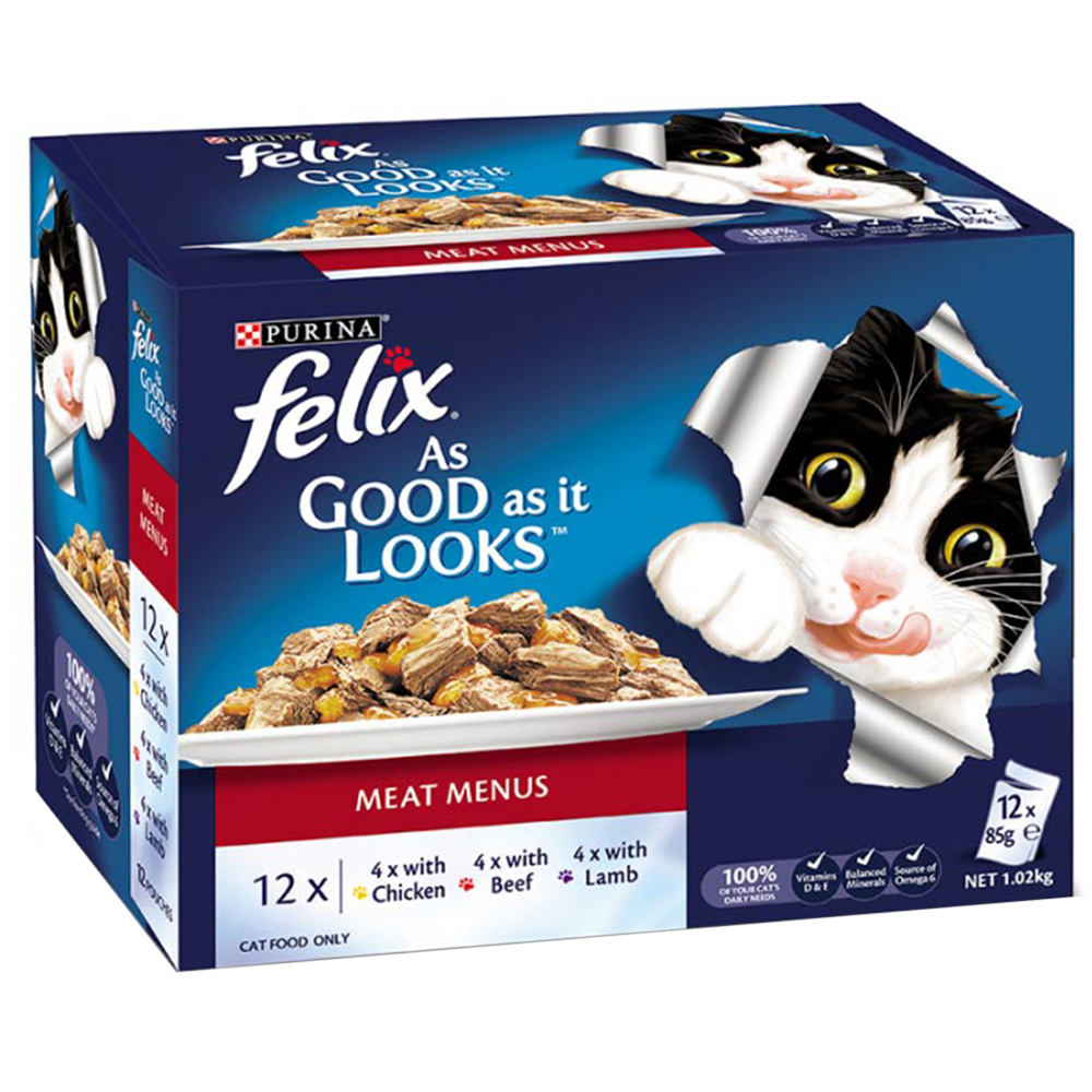 Felix Meat Menus Cat Food Chicken Beef Lamb 85g x 12
