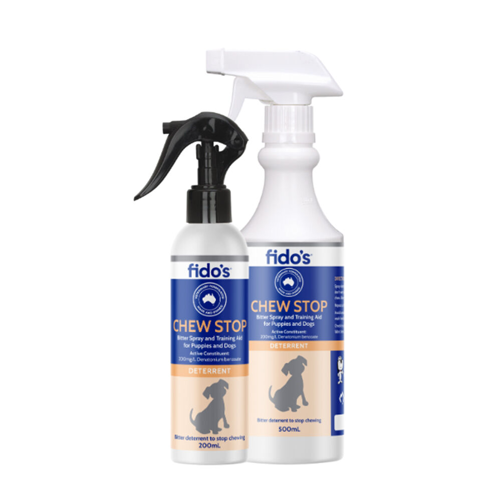 Fido's Chewstop is a bitter spray that most dogs find to be distasteful and extremely revolting! Used as a training aid, the Fido's Chewstop may be the answer to stop your dog chewing your plants, furniture, shoes or your other dog's collar!