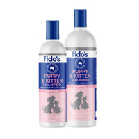 Fidos Puppy and Kitten Shampoo is a specially formulated shampoo for use on puppies, kittens and small domestic pets. It is a soap-free and hypoallergenic formulation that wont strip the oils from your pets coat.