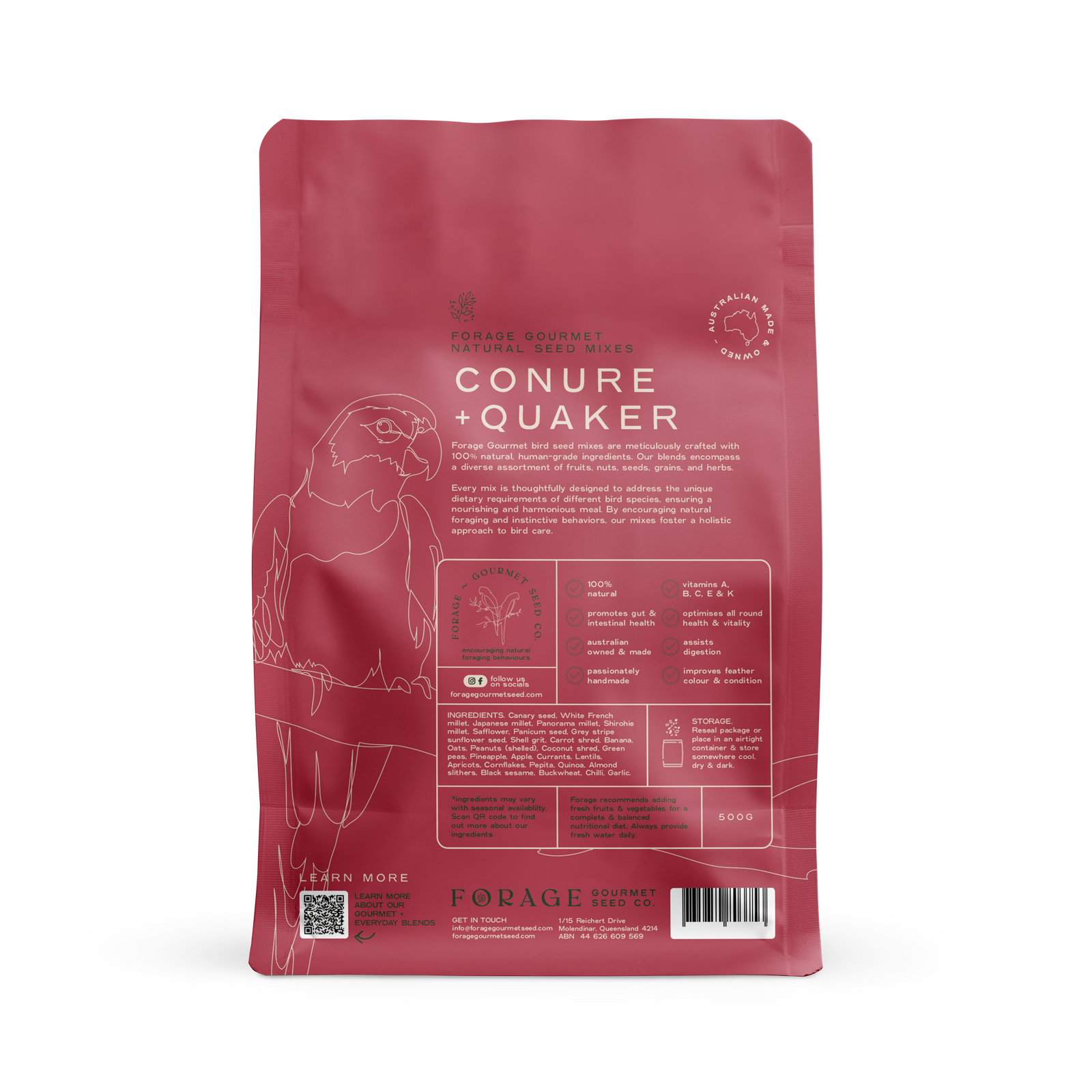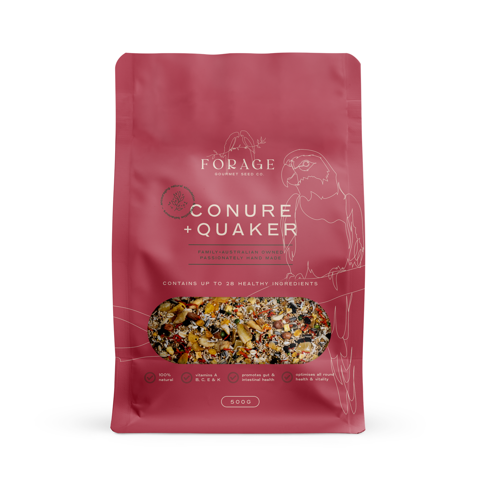 Treat your feathered friend to the best with our Gourmet Conure & Quaker Seed, expertly crafted using a nourishing blend of natural, 100% human-grade ingredients. This vibrant mix supports overall health while stimulating natural foraging instincts for mental and physical enrichment.