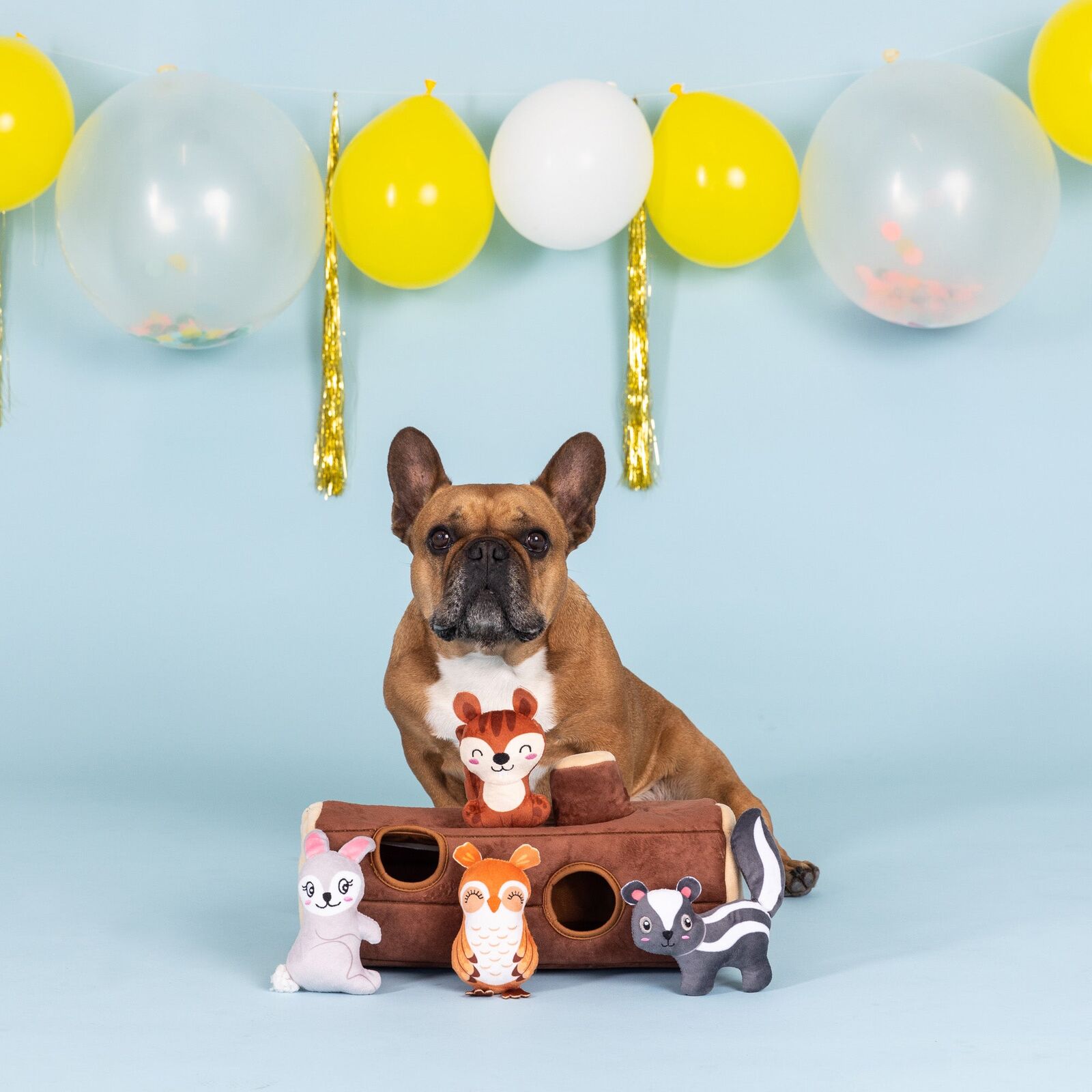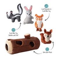 Tree-mendous fun! Our "Branch Out" burrow plush toy set is perfect for high-energy pups that enjoy interactive puzzle toys. This burrow toy set includes 4 mini toys, each stuffed with fluff and a loud squeaker. Keep your dog entertained and occupied with hide-and-seek fun: simply hide the mini toys inside the burrow toy, squeak a mini toy, and watch your dog try to figure out how to pull them out. They'll really woof you for this brain teaser!