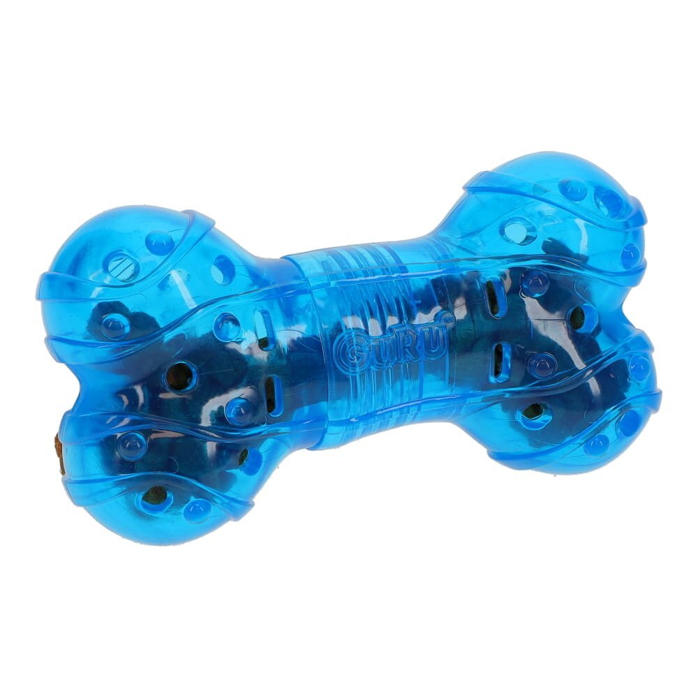 The No Begging! Bone provides dogs long-lasting treat sessions to occupy and engage their natural chewing instincts. Kibble is released through a single opening to keep pets happy and content, while the high-value treats are stored until the pet parent is ready to reward at the end of play time. The No Begging! Bone is made with Chew Pro; GURU's ultra-durable, custom, non-toxic thermoplastic rubber formulated specifically for tough chew sessions and long-lasting play. Easy to clean and top-shelf dishwasher safe.