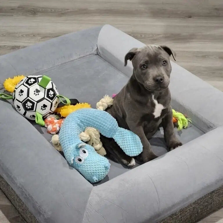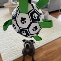 With new and improved tug handles, it's the ultimate interactive toy for fetch, tug-o-war, and zoomies around the park. Soft, lightweight, and full of bounce, it's made for fun, connection, and burning off that Staffy energy.