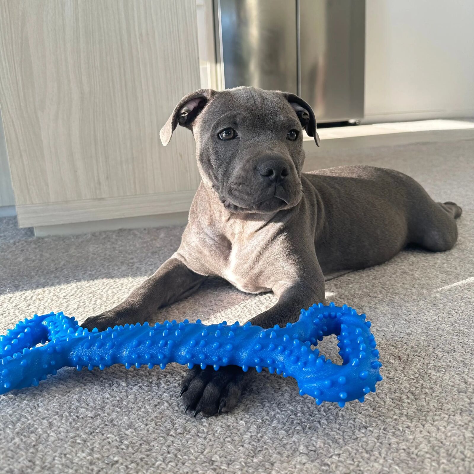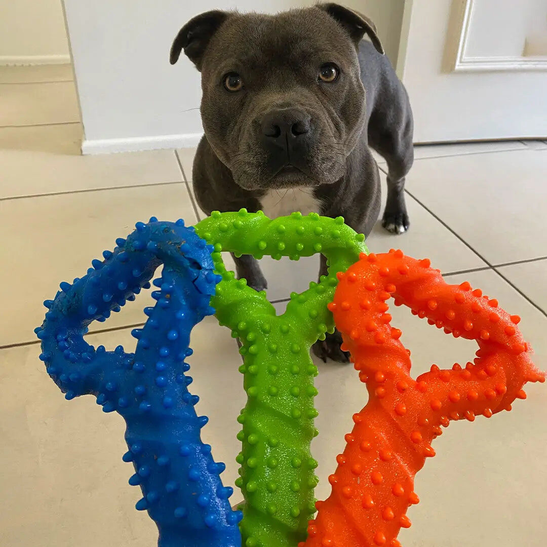 This best-selling tug toy is built for serious fun. Whether your dog loves solo play or a good old-fashioned tug session with their human or furry friend, the Tommy Tug Handle is a fan favourite. It's strong, flexible and just the right size for Staffy-strength games of tug-o-war.
