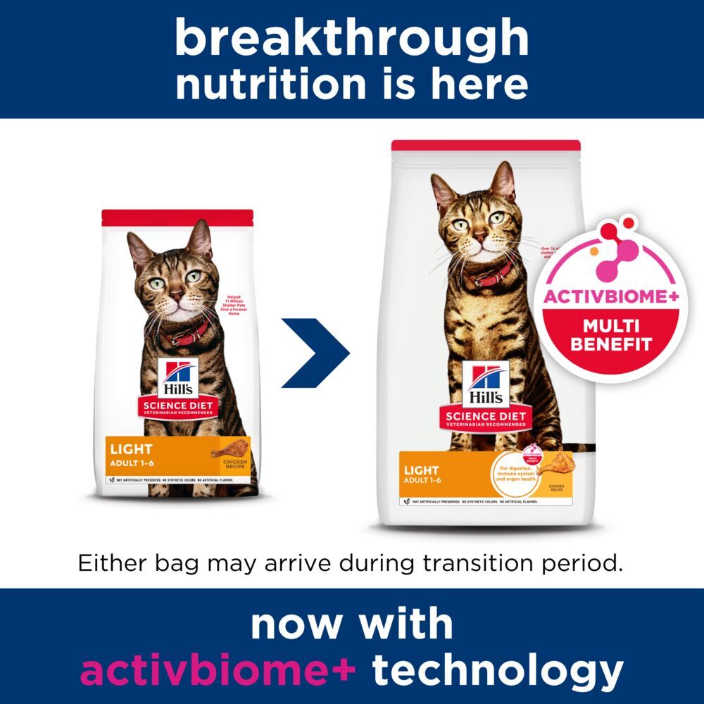 - Animal feeding tests using AAFCO procedures substantiate that Hill's Science Diet Adult Light Chicken Recipe Cat Food provides complete and balanced nutrition for maintenance of adult cats.