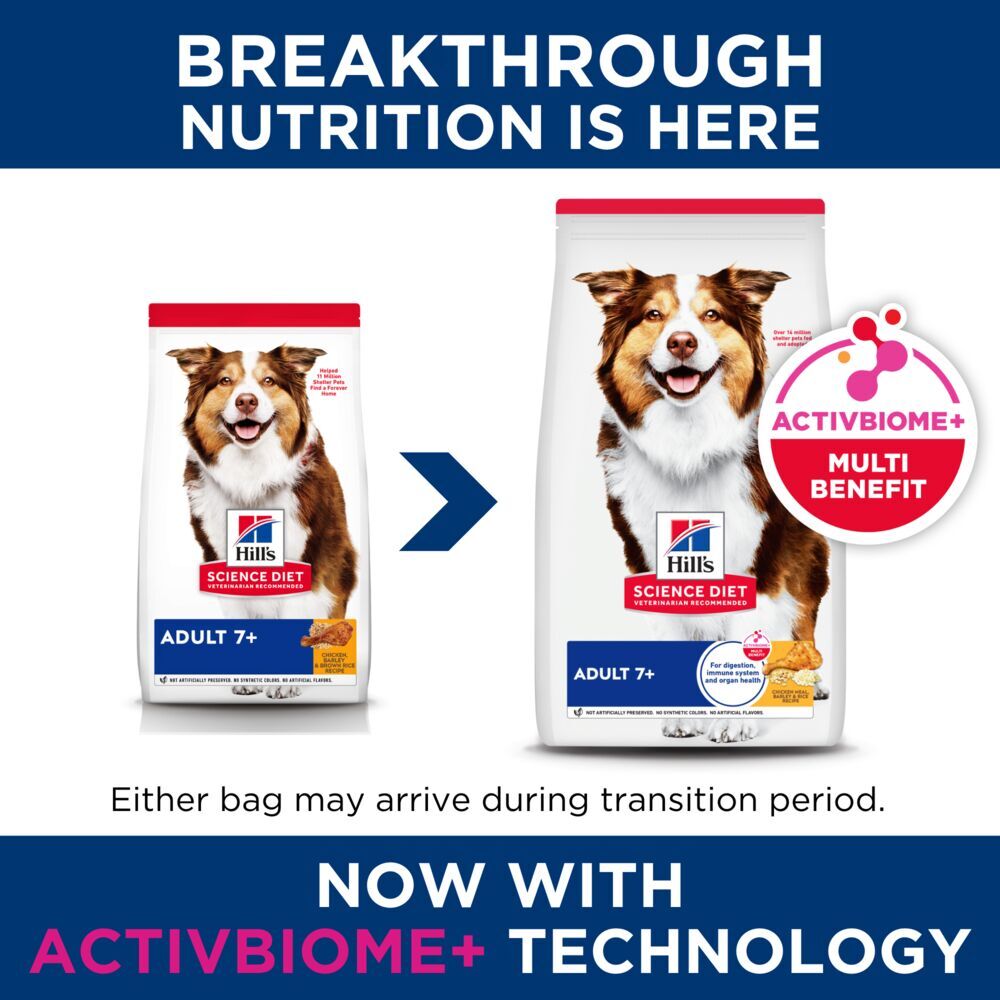 - Animal feeding tests using AAFCO procedures substantiate that Hill’s Science Diet Adult 7+ Chicken Meal, Barley & Rice Recipe provides complete and balanced nutrition for maintenance of adult dogs.