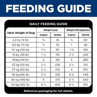 Ideal Weight of Dog - lbs (kg) | Amount per Day - Weight Loss: cups (grams) | Amount per Day - Weight Management: cups (grams)