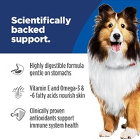 Hill's Science Diet Adult Sensitive Stomach & Skin Chicken Recipe dry dog food is science-backed nutrition that is specially formulated to nourish healthy pets who are prone to occasional digestive upsets and support healthy skin. This highly digestible formula for sensitive stomachs uses prebiotic fibres to fuel gut bacteria and support a balanced microbiome. In addition, this dry dog food is made with natural ingredients with added vitamins, minerals and amino acids. This food is an excellent source of vitamin E and Omega-6 fatty acids to nourish the dog's skin, and help maintain a healthy, shiny coat. This food is packed with a powerful combination of clinically proven antioxidants, including vitamins C and E, to support a healthy immune system. This nutrition is formulated with decades of cutting-edge research to be a great-tasting meal for adult dogs.