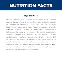 Chicken, chicken meal, yellow peas, cracked pearled barley, brown rice, brewers rice, whole grain sorghum, egg product, chicken fat, soybean oil, dried beet pulp, chicken liver flavor, lactic acid, flaxseed, pork liver flavor, potassium chloride, iodized salt, vitamins (vitamin E supplement, L-Ascorbyl-2-Polyphosphate (source of vitamin C), niacin supplement, thiamine mononitrate, vitamin A supplement, calcium pantothenate, riboflavin supplement, biotin, vitamin B12 supplement, pyridoxine hydrochloride, folic acid, vitamin D3 supplement), choline chloride, taurine, mixed tocopherols for freshness, minerals (ferrous sulfate, zinc oxide, copper sulfate, manganous oxide, calcium iodate, sodium selenite), natural flavors, beta-carotene.
