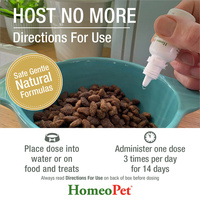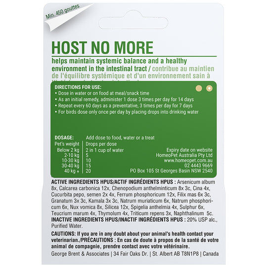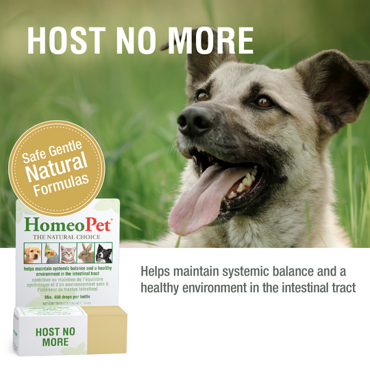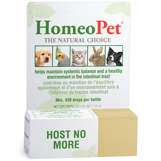 HomeoPet Host No More works internally to help maintain intestinal systemic balance and a healthy environment in the intestinal tract.