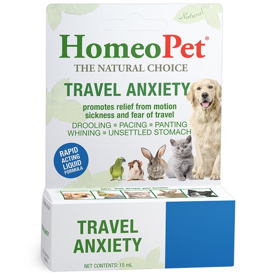 HomeoPet Travel Anxiety is formulated by Veterinarians specifically for travel anxiety, with very specific ingredients including calmatives to help with both the anxiety AND the motion symptoms.