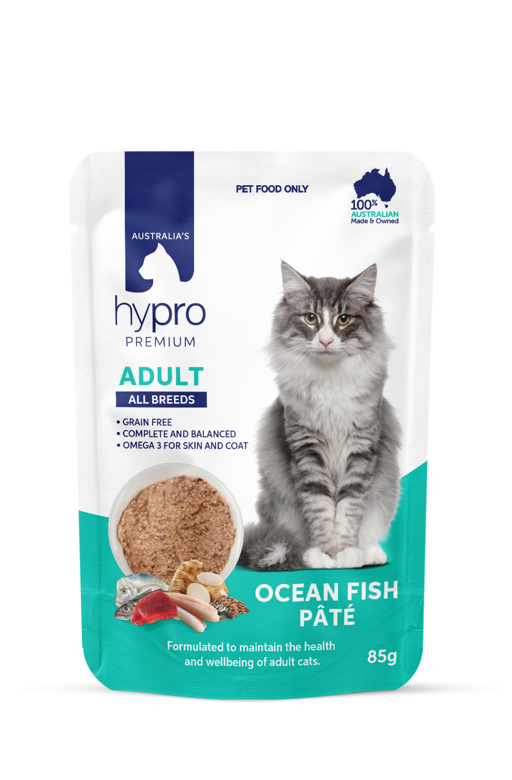 Our nutritionally formulated Hypro Premium Grain Free Ocean pâté for adult cats is crafted from carefully selected superfoods and 100% real, local Australian meat, making it nutritionally aligned to the flavour and aroma of your cat's natural diet offering a high level of palatability and enjoyment. With no artificial, flavours, colours or preservatives, our cat pâté range offers a holistic, nutritious meal to maintain the health and wellbeing for cats of all ages.