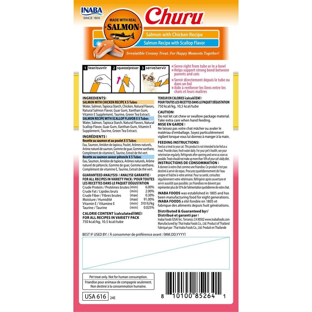 Inaba Churu Puree Cat Treats Salmon with Chicken/Scallop Variety Box 10 Pack