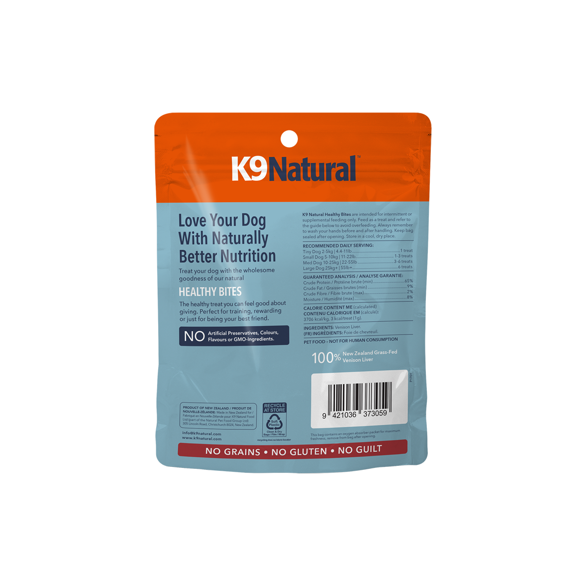 Made from 100% grass-fed New Zealand venison liver, nothing else. These single-ingredient dog treats are protein-packed and naturally rich in essential vitamins and minerals. Brimming with meaty flavour and freeze-dried to lock in nutrients and taste, they're perfect for training, rewarding, or adding variety to your dog's diet.