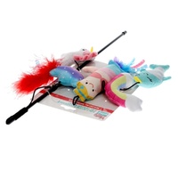 - Mermaid with Feather Tail; A graceful mermaid with a flowing feather tail that flutters and dances in the air as you wave the wand, enticing your cat to chase and bat.