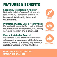 - Pure & Sustainably Sourced: Made from 100% premium Tasmanian salmon oil, a by product of the Salmon farming industry, ensuring high-quality nutrition with no artificial additives.