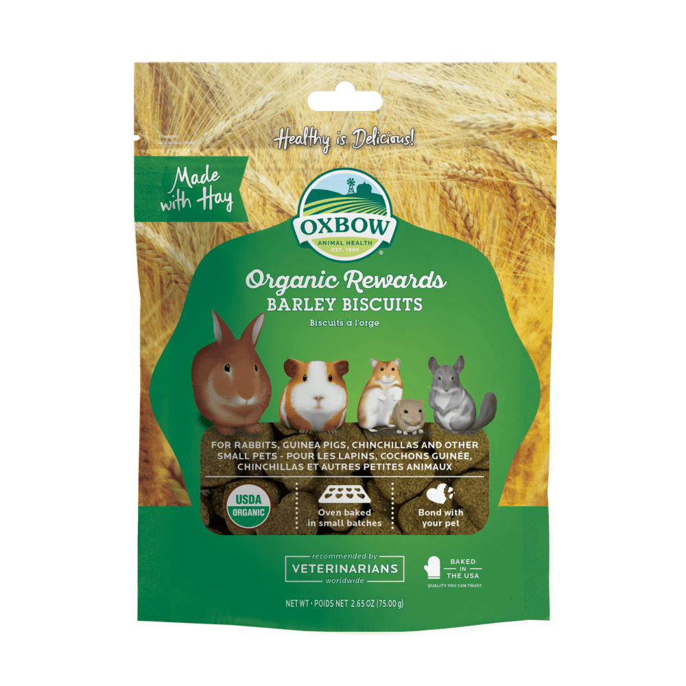 A treat for Mother Earth, too! Oxbow Organic Barley Biscuits contain a wholesome, baked combination of certified organic ingredients to create a treat that's good for both your pet and the environment! Made with organic hay, fruits, and vegetables, Oxbow Organic Barley Biscuits closely mimic the selections your rabbit, guinea pig, chinchilla, or other small pet would find in nature.