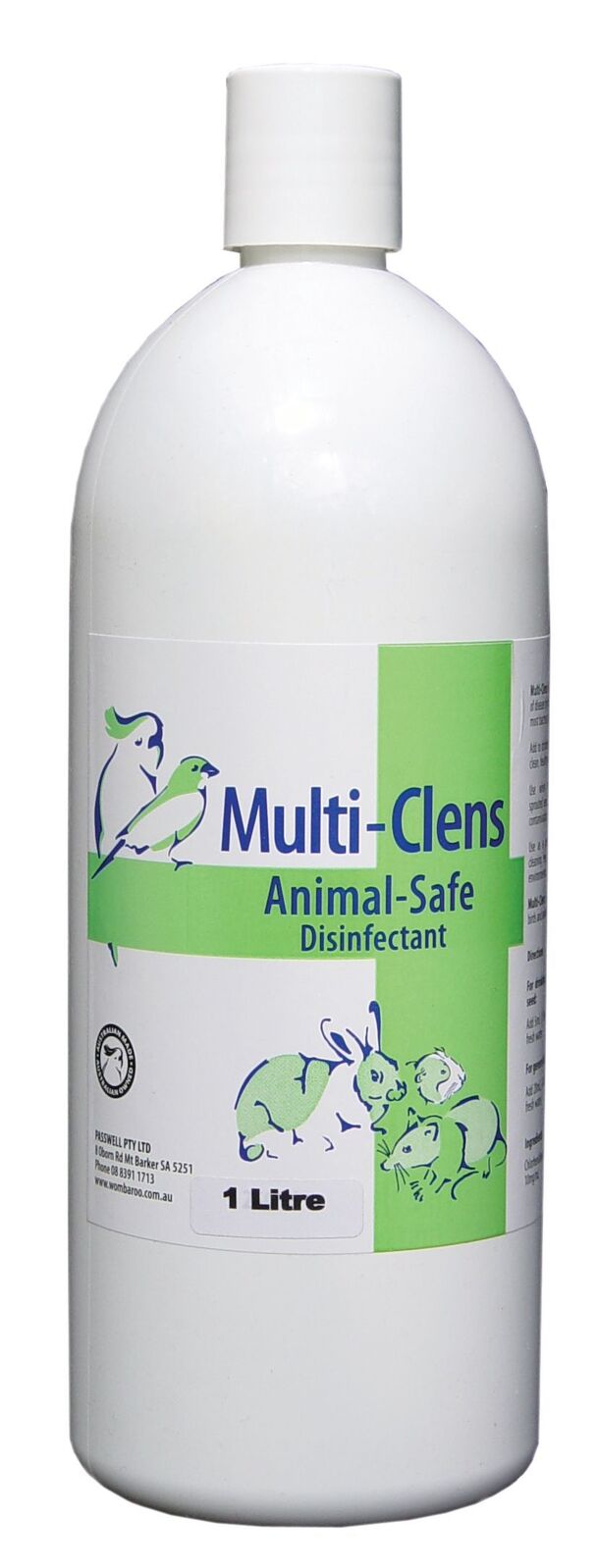 Multi-Clens is a water disinfectant for caged birds and animals.