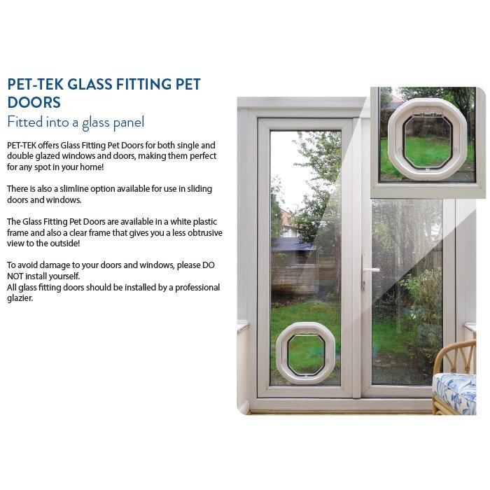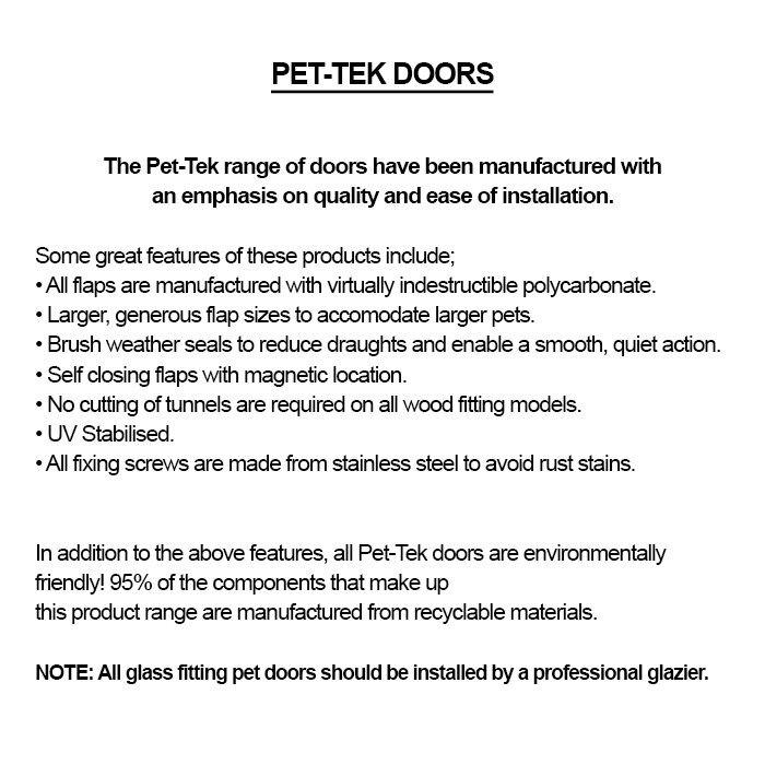 The glass fitting slimline dog door is design for glazing from 3mm-20mm. Its slimline profile makes it suitable for sliding windows. Suitable for Medium to semi-large dogs up to should height approx. 50cm. It has 4 way locking and additional security clips.